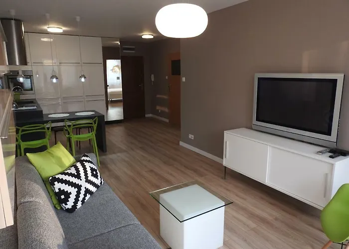 Apartament Z Ogrodem Wisniowy Sad Kołobrzeg med 1 sovrum, som ligger ungefär 25 minuters gångavstånd från Stefan Żeromski Park, erbjuder gästerna Wi-Fi. 2 km från den 48 m² stora lägenheten hittar du Mariakyrkan.